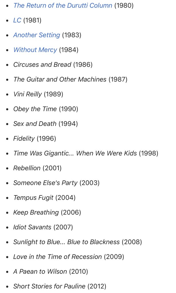 In the GUARDIAN piece it mentions that the DURUTTI COLUMN 1981 LP entitled “LC” is considered the greatest ever recorded by none other than BRIAN ENO. Here is the entire LP as remastered in 1996.