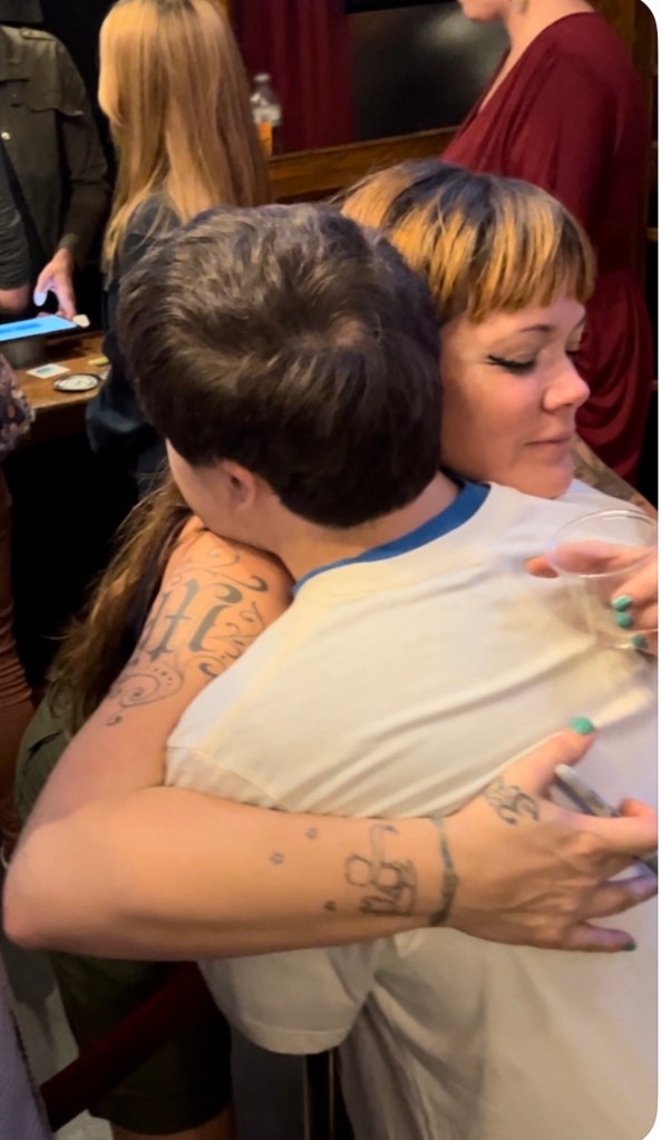 Here he is hugging his mother after the game